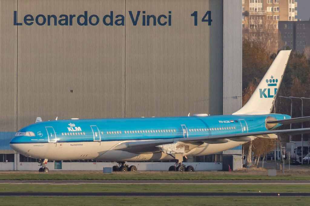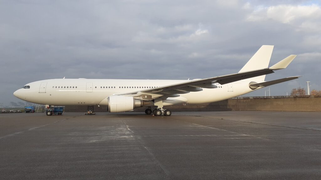 Ze staat er witjes bij, de PH-AON, in afwachting van de dingen die komen gaan nu haar vliegende bestaan bij KLM verleden tijd is. Voor deze Airbus A330-200 is het de derde keer dat ze een ander kleurtje kreeg.