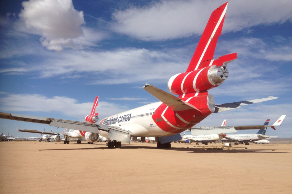Bij menig MD-11-liefhebber verscheen Victorville voor het eerst in beeld toen KLM de eerste machines van dit type uitfaseerde. Van de blauwe driemotorige jets is op deze plek al lange tijd geen spoor meer terug te vinden. Maar twee exemplaren met rode staarten die Martinair er op een later tijdstip achterliet, staan er nog altijd. Met de KDC-10’s ging het diezelfde kant op. Die twee wacht duidelijk een ander lot. Victorville heeft meerdere gezichten.