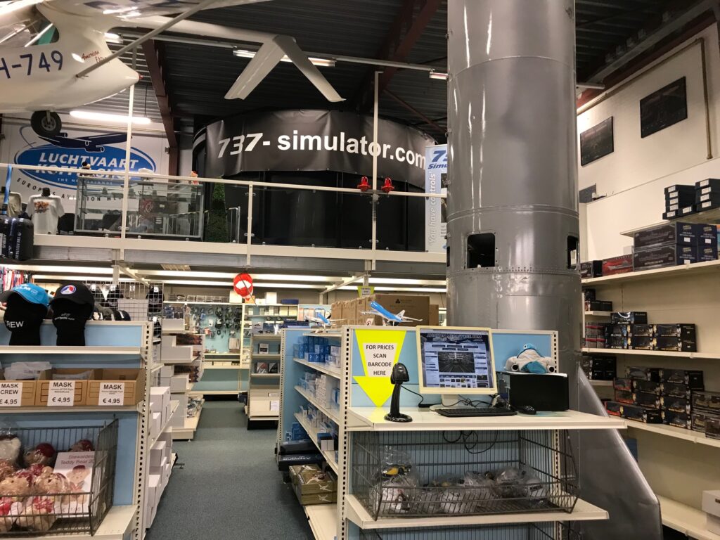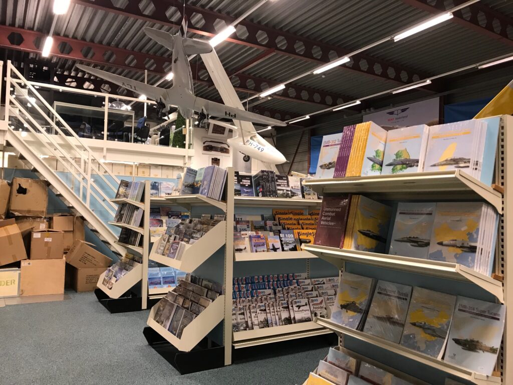 Rond een deel van een Scud-raket is een hele flight simulation-afdeling ingericht, inclusief een complete Boeing 737-simulator. ‘Die is te koop. Voor € 40.000 mag hij weg’, zegt Henk. ‘Hij past mooi in onze winkel maar onze enige werknemer die er verstand van heeft gaat over een jaar met pensioen en we hebben geen opvolger.’ Henk is niet te porren om er zelf iets mee te doen. Over de verplichte simulatorsessies in zijn Martinair-tijd: ‘Het zijn leeruren waarin je met de meest uitzonderlijke situaties wordt geconfronteerd. Niet goed voor je ego.’ Er wordt niet alleen een punt gezet achter de verkoop van alles en nog wat op simulatorgebied. Met videobanden en dvd’s is het ook verleden tijd. ‘Tegen de verwachting in is de boekenverkoop in al die jaren nooit teruggelopen. Er wordt ook nog veel uitgegeven. Mensen geven de voorkeur aan naslagwerken om in te kijken.’