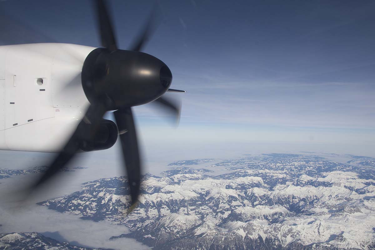 Door gebruik te maken van de energiezuinige Dash-8-Q400-vliegtuigen streeft Sky Alps ernaar om de CO2-uitstoot per passagier en kilometer op zijn vluchten zo laag mogelijk te houden. Terwijl het Europese gemiddelde rond de 3,6 liter/100 km per passagier ligt, slaagt de Italiaanse maatschappij erin om een gemiddeld brandstofverbruik van 2,3 l/100km per passagier te bereiken. Volgens Sky Alps zijn hun turboprops dan ook duurzamer dan straalvliegtuigen. Melkert: “Die bewering klopt wel. Dat heeft te maken met twee redenen. Ze vliegen over het algemeen wat langzamer. Als je dat doet, op een niet te lage hoogte, dan heb je minder luchtweerstand en dus minder brandstof nodig. De tweede reden is dat propellers efficiënter zijn dan straalmotoren. Met daarbij de kanttekening, dat ze elkaar steeds minder gaan ontlopen. Een moderne turbofan kan zelfs zuiniger zijn dan een wat oudere turboprop.” Overigens gaat De Havilland Canada samenwerken met fabrikant ZeroAvia om Q400-toestellen uit te rusten met een waterstof-elektrisch voortstuwingssysteem. Dat zou een enorme sprong betekenen in de verduurzaming van regionale vliegtuigen.