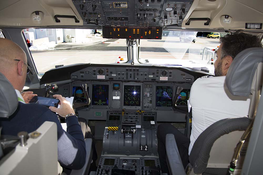 De Q400 is een comfortabel regionaal toestel. De 78 stoelen zijn twee aan twee gerangschikt. Je zit dus óf aan het raam, óf aan het gangpad en dat is wel zo prettig. De beenruimte is meer dan voldoende voor een vlucht van anderhalf uur. De cabin crew bestaat uit twee personen. Zij delen twee keer warme en koude dranken uit en bieden yoghurt of koekjes als versnapering aan. De kruishoogte bedraagt ruim 7,5 kilometer. Hoog genoeg om geen last te hebben van weersinvloeden. Het laatste half uur richting Bolzano is echt genieten. Dan vliegt het toestel laag en steeds lager over de bergen om uiteindelijk aan de voet van de Dolomieten de wielen aan de grond te zetten.