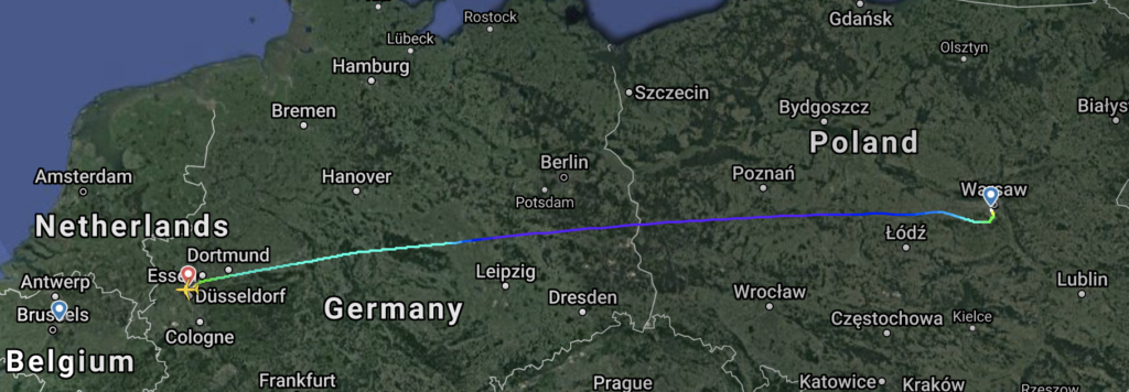 Twee uur later steeg deze machine op voor het ‘tweede deel’ van de reis. Om 0:40 uur, vier uur later dan aanvankelijk gepland, volgde de landing in de Belgische stad. Dat betekende dat de reizigers die vanuit Brussel naar Warschau wilden vliegen eveneens vertraging opliepen. De SP-LND zou een dag later vanuit Düsseldorf als LO9004 naar Warsaw Chopin Airport vliegen.