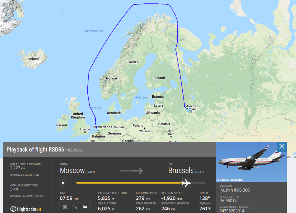 Het vliegtuig landt naar verwachting zondagochtend rond 09:00 uur op Brussels Airport. Om 11:00 uur vertrekt het toestel weer in de richting van Moskou. Voor de vlucht hebben de Russen speciale toestemming gekregen van de autoriteiten, aangezien Russische vliegtuigen de Europese Unie sinds eind februari niet meer in mogen vanwege de invasie van Oekraïne.