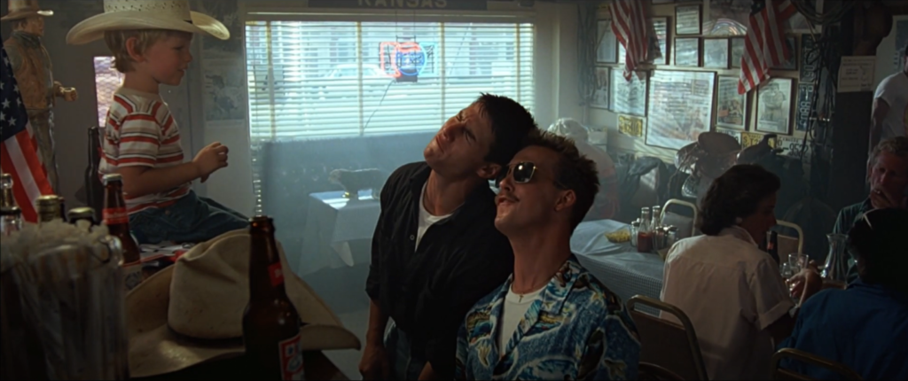 De bar waar de bekende pianoscène is opgenomen (Maverick en Goose zingen samen onder andere ‘Great Balls of Fire’) bestaat echt – en je kan er gewoon een tafel reserveren! De ‘Kansas City Barbeque‘ is een grill-restaurant in San Diego. Sinds de opnamen noemt het restaurant zich ook wel ‘Top Gun Bar’. In 2008 brandde het restaurant bijna volledig af, maar na een verbouwing ging het een half jaar later weer open. De inventaris ging grotendeels verloren, maar de beroemd geworden piano kon gered worden.