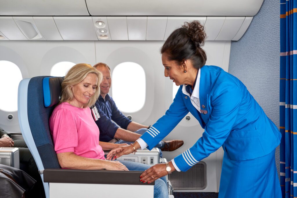 Steeds meer maatschappijen installeren Premium Comfort in hun vliegtuigen, waaronder KLM’s partners Air France, Delta Airlines en Virgin Atlantic. De blauwe maatschappij speelt nu ook in op deze ontwikkeling. De stoelen zijn een ontwerp van Collins Aerospace en herinneren bij de eerste aanblik meteen aan het Business Class-product van de vorige eeuw. Geen slaapstoel, maar wel een stoel met een bredere en dikker gevulde rugleuning die over meer beenruimte beschikt. De stoel kan ook verder achterover dan in de Economy Class en Economy Comfort, zij het met het enorme verschil dat iemand die achter een ‘kantelaar’ zit en zelf niet wil kantelen, geen rugleuning op een paar centimeter afstand van zijn gezicht gepositioneerd krijgt. Het is best zitten. Reizigers die voor deze klasse boeken, genieten bovendien voorrang bij het inchecken en instappen, mogen meer bagage meenemen, krijgen betere maaltijden voorgeschoteld en dat tezamen met een breed aanbod van selecte wijnen en likeuren. Een amenity kit wordt ook nog uitgereikt, al zal daarin vergeefs worden gezocht naar een KLM-huisje.