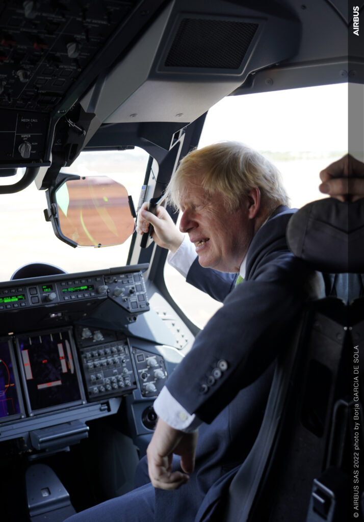 Op videobeelden die door Downing Street zijn vrijgegeven is te zien dat de afzwaaiend premier van dichtbij een kijkje neemt bij een A330 MRTT-tanker. Over de vlucht vertelde Johnson dat het toestel bij de takeoff als vuurwerk omhoog ging en dat hij zelf een aileron roll en een barrel roll mocht maken. ‘We begonnen een paar G’s te trekken, zoals ze zeggen, nogal wat G’s. En toen ik weer bij bewustzijn kwam, zag ik de zee steeds dichterbij komen en begon ik te dromen over het ongelooflijke bos van windmolenparken dat ik overal in de Noordzee kon zien’, grapte de premier.