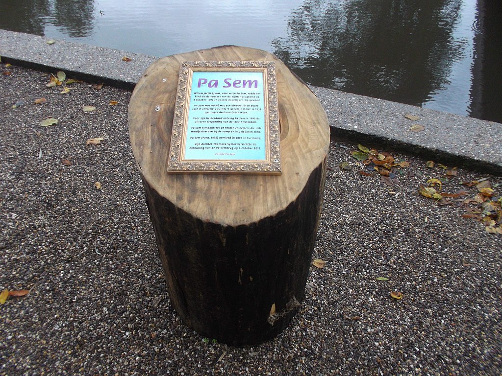 Onlangs bezocht ik de herdenkingsplaats die nabestaanden en overlevenden van de Bijlmerramp al snel inrichtten rond ‘de boom die alles zag’. Er staan daar nog meer bomen die alles zagen, maar om deze ene boom is een bloembed aangelegd. Daaromheen een veelkleurig tapijt van mozaïektegels, gecreëerd door nabestaanden en overlevenden. Een aantal van hen schreef een tekst bij het zelfgemaakte tegeltje en sommige daarvan zijn te zien op een lange stenen wand. ‘Een hart met een traan erin’, schreef iemand. Weer een ander: ‘Ik heb een tegel gemaakt omdat me vrientje is doodgegaan.’ En nog weer een ander: ‘Daar was een zwarte wolk met sterren erin.’ In twee van de mozaïekjes is een vliegtuig te zien. In een ander de Jodenster. In nog weer een ander het wapen van Amsterdam, met daaronder een spoor van bloed.