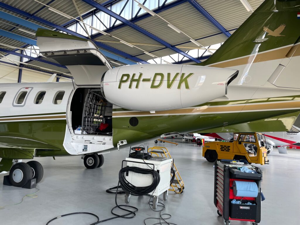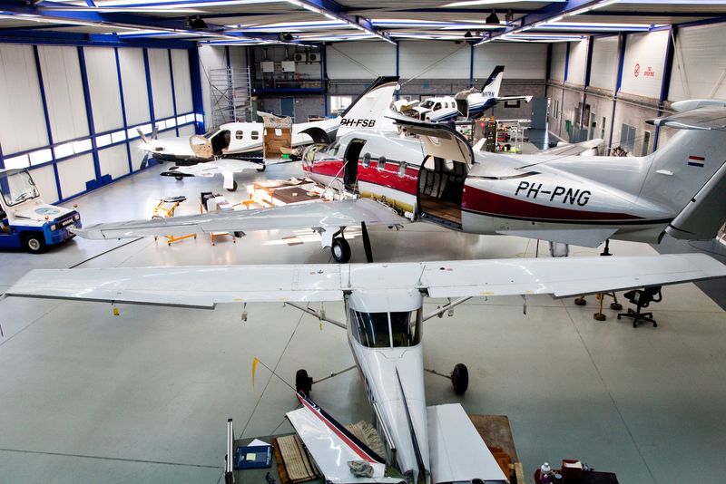 ‘Voor de bedrijven die hier met hun machines komen, kunnen wij het hele management van zo’n vliegtuig doen’, vervolgt Inge als we weer verderlopen. ‘Een aantal van de home based-eigenaren heeft zelf een brevet en vliegt er commercieel, op privébasis of voor het eigen bedrijf mee. Soms huren ze ook iemand in die bevoegd is om op dat vliegtuigtype te vliegen. Wij kunnen dan adviseren, bijvoorbeeld over de vlieger die erop kan.’