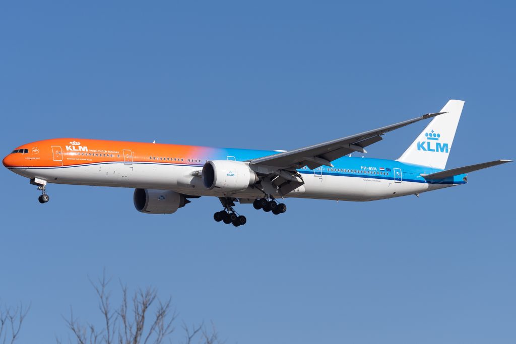 Op het moment dat de 777 haar bijzondere jas kreeg aangemeten, hing de vlag er nog zodanig bij dat KLM het zich kon permitteren kosten noch moeite te besparen om de lucht een beetje meer oranje te laten kleuren. Omdat het vliegtuig in 2015 nog in de verse verf was gezet, hoefde het niet geheel te worden gespoten. Dat scheelde alweer in de kosten. Dankzij het principe om de verf in meerdere dunne lagen aan te brengen, kon er nog meer worden bespaard. Al met al nam de omspuitklus vier volle dagen (24/7) in beslag, waren er 35 mensen mee in de weer en kostte de metamorfose honderd rollen schilderstape, tweeduizend schuurpads, duizend meter afdekplastic, honderd stofdoeken en 350 liter verf.