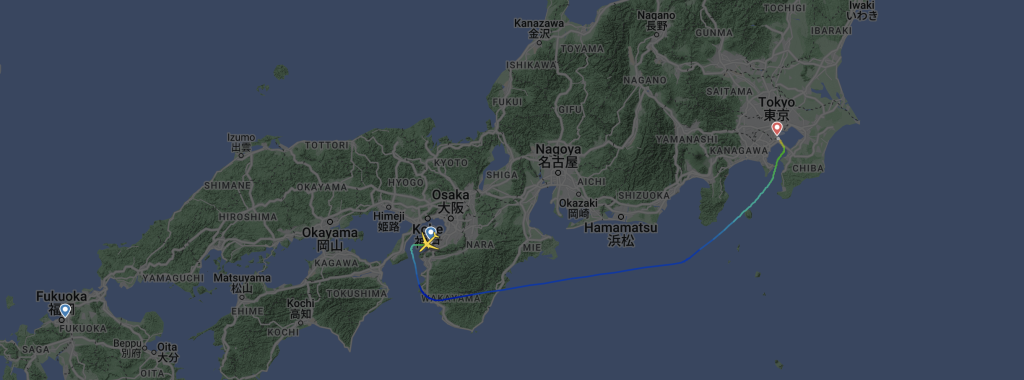 De A350 moest daarom uitwijken en zou dat in eerste instantie doen naar Kansai International Airport, gelegen ten zuiden van Osaka. Daar landde het toestel iets voor elf uur ’s avonds. Japan Airlines besloot het daar echter niet bij te laten. Op de luchthaven werd de A350 bijgetankt en nagelopen. Ook werd de bemanning, die haar uren inmiddels had volgemaakt, vervangen door een nieuwe crew. Daarop vertrok het vliegtuig iets voor twee uur ’s nachts terug in de richting van Tokyo. Daar landde de A350 een klein uur later, waardoor de passagiers acht uur na het eerste vertrek terug bij af waren. In Tokyo werden de 335 reizigers voorzien van compensatie en een hotelovernachting. De volgende ochtend vlogen ze met een speciale extra vlucht alsnog naar Fukuoka. De airline besloot diezelfde dag bovendien voor de twee avondvluchten naar Fukuoka, die wederom vertraging hadden opgelopen, een vrijstelling van de deadline aan te vragen.
