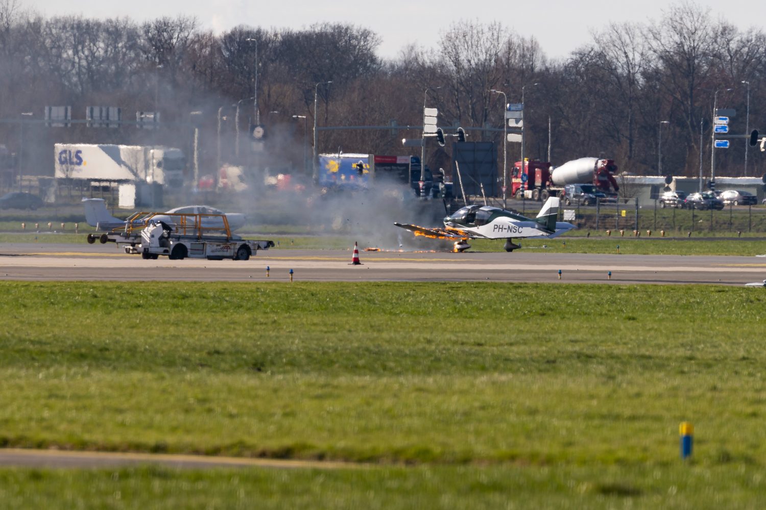 Het vliegtuig, een Robin DR400 van de vliegclub Rotterdam, landde iets na half twee ’s middags op de luchthaven. Vlak na de landing vloog om nog onbekende reden het linker landingsgestel in brand. De DR400, met registratie PH-NSC, kwam op de taxibaan tot stilstand waarna de piloot het toestel direct verliet. Het vuur had zich inmiddels verspreid naar de vleugel van het vliegtuig. De brandweer was snel met twee crashtenders ter plaatse om de brandende machine te blussen.