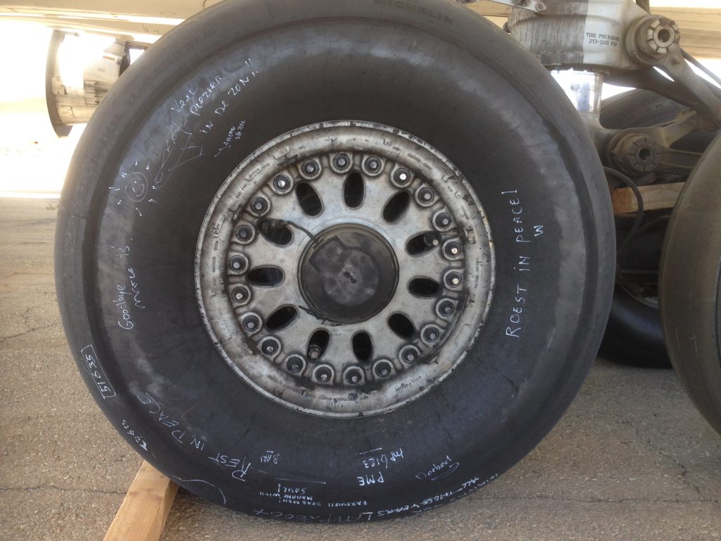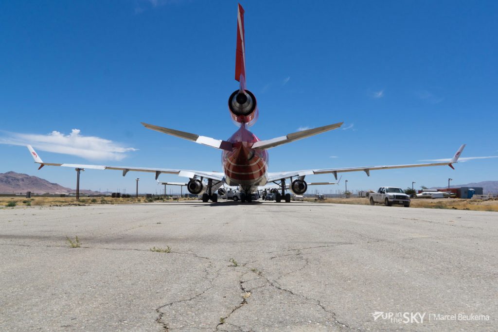 De volgende dag brak het moment aan van de echt aller, allerlaatste Martinair-MD-11-vlucht. Wederom uitgezwaaid met een watersaluut en flink wat belangstellenden. Van de 4,5 uur vliegen naar ‘final destination’ Mojave was het laatste deel VFR, zonder controle. ‘Zoals met een kleine Cessna naar Teuge’, vertelt toenmalig Manager Flight Operations MD-11 Roland Aalbers. ‘Maar wel met harde wind, bergen en het verboden militaire gebied van Edwards Air Force Base.’ De crew had geen tijd om stil te staan bij wat er komen ging: de echt aller, allerlaatste landing, nog een paar honderd meter taxiën, de motoren uitzetten en de MCP als laatste Martinair-MD-11 achterlaten op een plek ‘where airplanes have to die.’