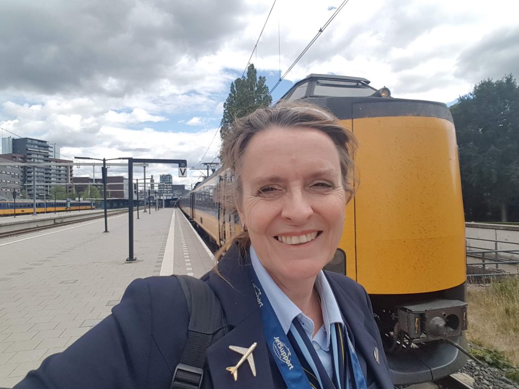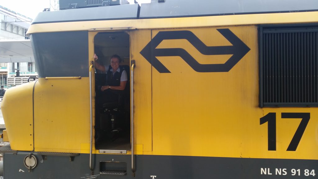 ‘Ik zit niet meer in de cockpit maar in de cabine’, lacht ze. ‘Die terminologie was wel even wennen, want bij een vliegtuig zitten de passagiers in de cabine. Maar in beide gevallen gaat het om het besturen van machines. Het gevoel van vrijheid is voor mij hetzelfde, ik zit er alleen. En er zijn meer overeenkomsten. Net als in een vliegtuig moeten er in een trein diverse checks worden gedaan om hem voor vertrek gereed te maken. Wederom heb ik een prachtig uitzicht. In plaats van door de lucht vlieg ik nu over de grond heen, zij het met lagere snelheden. En terwijl ik een vliegtuig altijd zo wil landen dat niemand voelt dat ik de grond raak, wil ik de trein zo stoppen dat de mensen geen schok krijgen.’