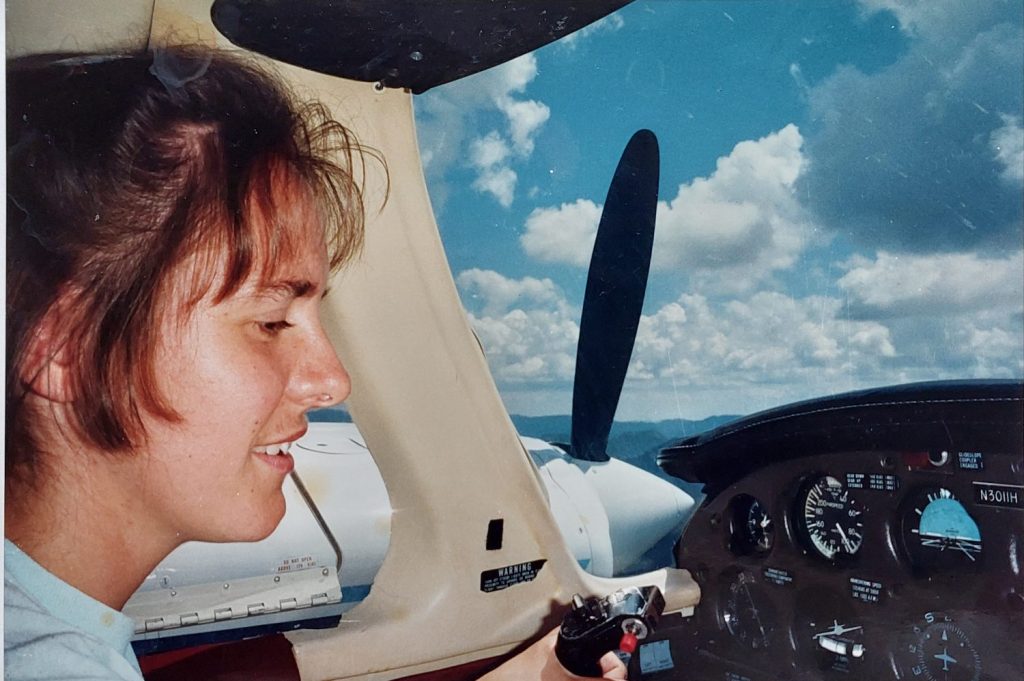 Van alle kanten kreeg ze steun, van haar ouders, haar overige familie en haar vriend om door te gaan voor beroepsvlieger. Ze volgde de opleiding vanaf 1989, een deel in Nederland, het andere in de Verenigde Staten. Yvette: ‘We vlogen veel in Arizona, het gebied van de cowboys. Toen ik mijn eerste crosscountry maakte en bijna terug was bij het veld, liet ik de toren weten dat ik er aankwam. “Roep maar als je de grens van het terrein passeert”, zeiden ze. Maar ik genoot zo van het landschap dat ik steeds verder van het vliegveld wegvloog, ik had nog helemaal geen zin om terug te gaan. Uiteindelijk riepen ze me op met de vraag waar ik toch bleef. Het duurde even voordat ik me weer kon oriënteren want ik was de weg inmiddels kwijt.’ Yvette lacht aanstekelijk. ‘De verhalen die er later van kwamen! Ik zou een week weg zijn geweest omdat ik achter de cowboys aanzat!’