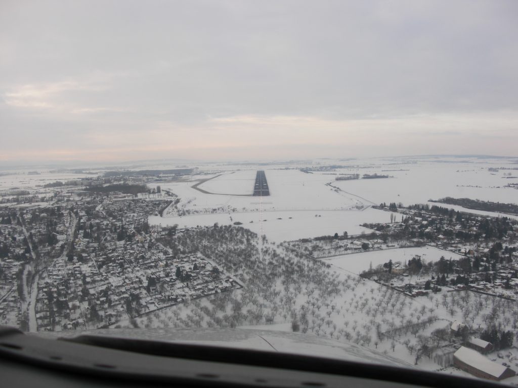 Yvette vloog wel vaker op Erfurt aan. Dit keer was ze niet alleen maar samen met haar baas, die er een vraagteken bij had of er wel gevlogen kon worden aangezien de deuren van zijn bedrijf moeilijk te openen waren bij stormachtig weer. ‘En dat was het, zo’n 55 knopen’, zegt ze. ‘Ik belde met de toren om te vragen hoe het daar met de wind gesteld was, of die nog erger werd. Ja dus. En toch besloot ik te gaan.’ “Wil je een lange final?”, wilde de toren weten. Graag. Ik maakte een softy landing, mijn baas klapte. “Ik doe aan zweefvliegen, hoe vaak moet ik je dat nou vertellen”, lichtte ik toe. Ik parkeerde de kist zo dat de wind in de motoren blies. “Geef je koffer maar”, zei ik bij het uitstappen. Ik pakte die koffer en zette hem neer zonder aan de wieltjes eronder te denken. Daar ging ie, hij vloog over het veld. Ik erachteraan. Het tafereeltje bleef niet onopgemerkt bij de toren. Lol daar! Maar jawel, ik kreeg de koffer te pakken. Hijgend kwam ik ermee terug. Omdat ik ’s avonds nog een andere klus had, vloog ik diezelfde dag alleen weer terug naar Teuge. “Weet je dat het stormt?”, vroegen ze daar. “Ja, dat weet ik. Ik ben ook met storm vertrokken.” Eenmaal daar aangekomen, bleek dat mijn baas meermaals had gebeld, die was toch wel ongerust. Toen ik hem twee dagen later weer ophaalde, zei hij dat ik een naam had. Omdat ik de enige was die met die storm op Erfurt was geland. Alles had afgezegd, de zakelijke luchtvaart, de commerciële luchtvaart en ook alle privévluchten waren gecanceld. Maar Yvette kwam binnen.’