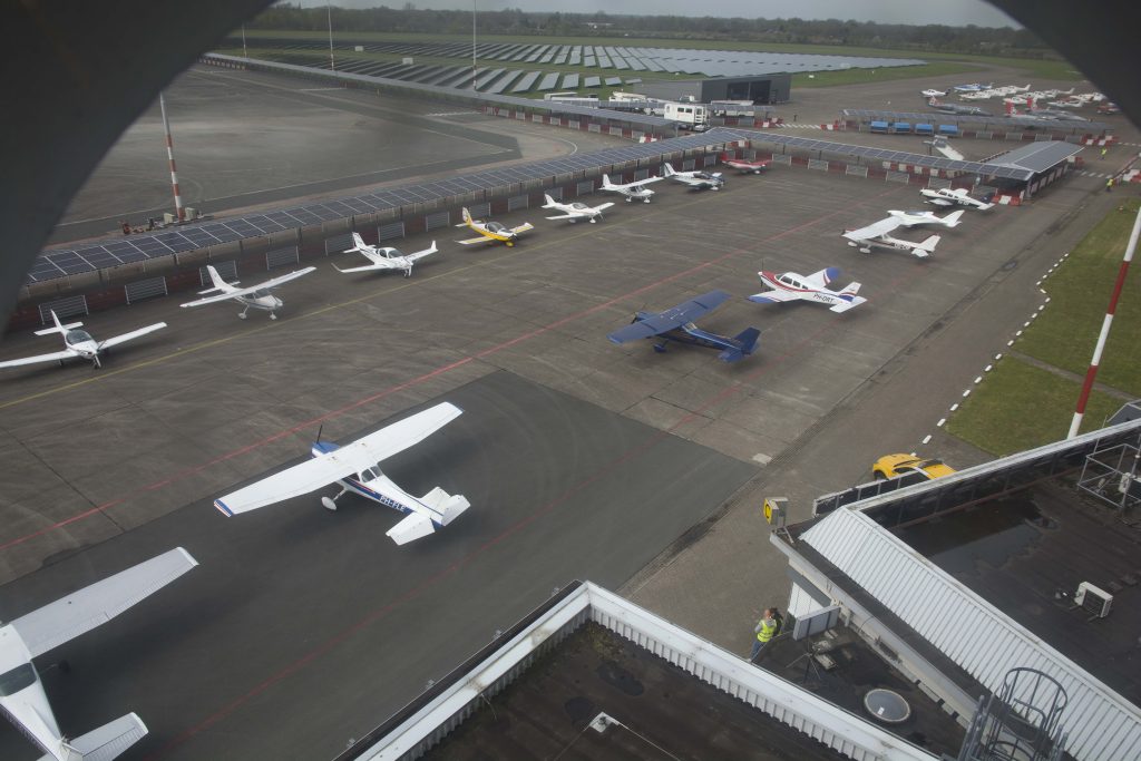 Op zaterdag 22 april vond onder prima weersomstandigheden een fly-in plaats op Groningen Airport Eelde. Slecht weer in het zuiden en westen van het land zorgde helaas voor de nodige afmeldingen. Toch namen tientallen toestellen uit Nederland, België en Duitsland de moeite om naar de noordelijke luchthaven af te reizen. De inzittenden werden getrakteerd op een informatief programma. Zo was er een kleine Aviamarkt met kraampjes en konden bezoeken worden gebracht aan onder andere de verkeerstoren, KLM Flight Academy, de nieuwe brandweerkazerne en Kavel 10. Enkele toestellen van Skyline waren van dichtbij te bewonderen. Up in the Sky was aanwezig op Groningen Airport en maakte een fotoreportage.