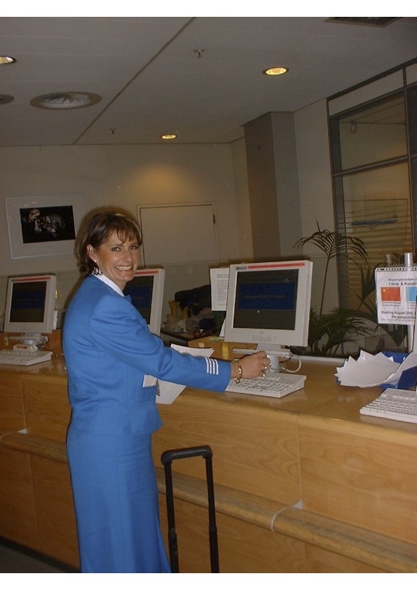 ‘De komst van de 747 was regelrechte luxe voor ons’, vervolgt Milly. ‘Hij was groot, maar veel makkelijker te behappen. En we konden alles met de trolley doen. Naar boven moesten we ook in de Jumbo, maar er was een liftje waarin al het eten en drinken kon worden vervoerd. Met de komst van het Galleys & Purser Workstation in de 400 beschikte je als purser over een eigen kantoortje. Helemaal geweldig, ik trok het gordijntje dicht en had daar mijn eigen plek met al die knoppen waarmee ik de hele boel kon overrulen: licht, geluid en de schermen die toen nog centraal waren.’