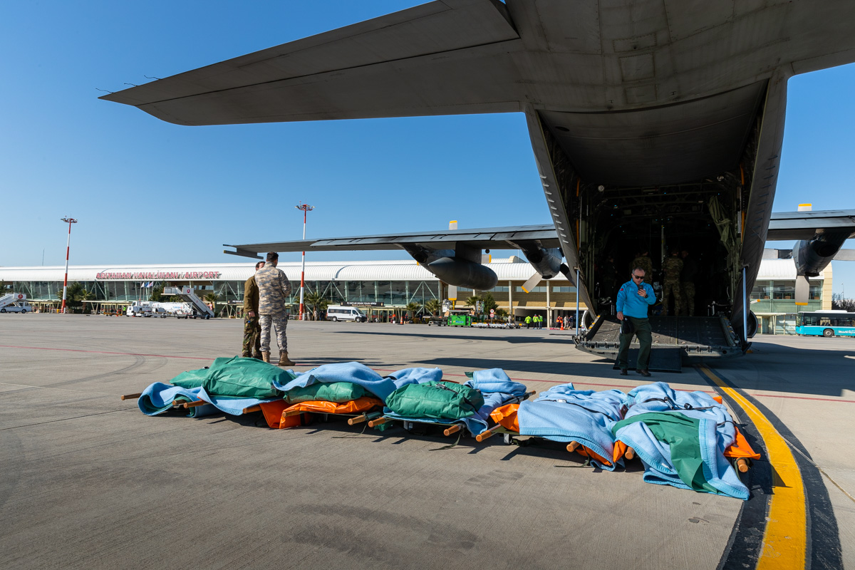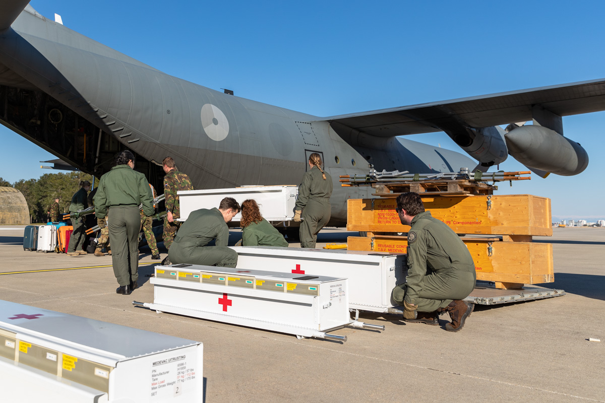 ‘Ik ging als eerste mee naar Turkije. We werkten met twee teams, een dagploeg en een nachtploeg. Ik zat in team 2, wij vlogen ‘s avonds. Tijdens onze eerste vlucht namen we zes patiënten mee, wat niet onze volle capaciteit was. Maar omdat we dit soort evacuaties met grote aantallen niet vaak doen, wilden we niet meteen met een vol toestel vliegen. Gaandeweg werden het er meer, tot uiteindelijk dertig op één vlucht. Voor zover ik weet, is het de eerste keer geweest dat we zulke grote aantallen patiënten vervoerd hebben in een Nederlandse C-130.’