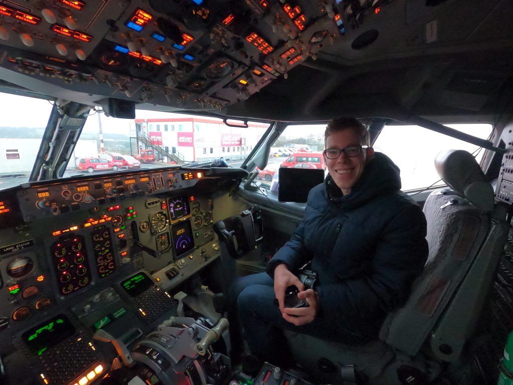 Enthousiast vertelt hij verder: ‘Dat geluid van die GE’s (General Electric CF6; LK) onder de MD-11 was geweldig. Als je langs de baan stond en er kwam er één voorbij, hoorde je eerst het geluid van de motoren 1 en 3 en vervolgens dat van motor 2. Dat was zo’n unieke ervaring!’ Met enige weemoed vervolgt hij: ‘Die machine heeft een prachtig design, klassiek en modern tegelijk. Die split-tip winglets waarmee ze is uitgerust zie je nu op de Boeing 737 MAX. Helaas heb ik maar één keer een voet in de MD-11 kunnen zetten. Dat was tijdens mijn stage bij Swissport Cargo. De PH-MCW van Martinair stond op het platform. Hoewel Swissport de afhandeling van die machine niet deed, mocht ik toch even de cockpit in.’