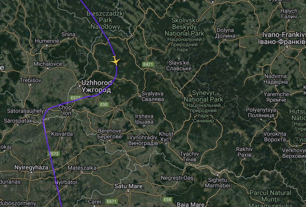 Een Boeing 737-800 van Enter Air vloog afgelopen vrijdag onbedoeld door het Oekraïense luchtruim ter hoogte van Oezjhorod.