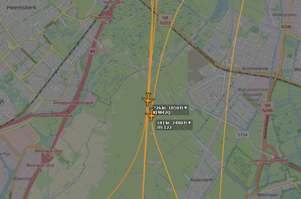 Bij het incident waren een Boeing 737-900 van KLM, registratie PH-BXP en een door TUI ingehuurde Airbus A320 van GlobalX, registratie N276GX, betrokken. Radargegevens van ADS-B Exchange laten zien dat er nog geen 170 meter tussen de vliegtuigen zat. De vluchthistorie van de Airbus toont hoe het toestel het aanvliegpad van de Zwanenburgbaan voorbij vloog en op dat van de Polderbaan af ging. Op hetzelfde moment bevond het KLM-toestel zich ook in het verlengde van de Polderbaan.