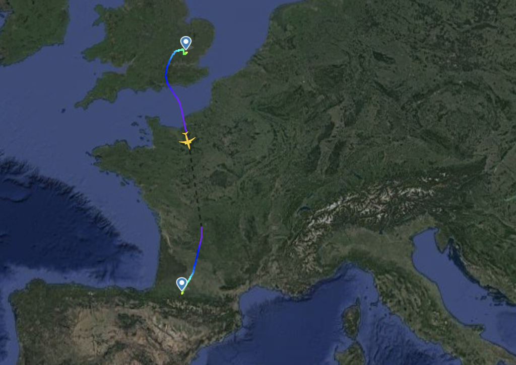 Het toestel, registratie EC-NGC, vertrok die dag 8:55 uur lokale tijd vanuit Londen Stansted Airport op weg naar Tarbes, een Franse stad ongeveer honderd kilometer verwijderd van grens tussen Frankrijk en Spanje. Toen de 737 zich meer dan 150 kilometer ten zuidwesten van Parijs bevond, werkte de transponder van het vliegtuig, waarmee het toestel zichtbaar is op de radar, door een vooralsnog onbekende oorzaak niet meer. Op dat moment hadden de vliegers van de 737 contact met de luchtverkeersleiding in Brest. Uit gegevens van Flightradar24 blijkt dat het toestel ongeveer een halfuur na vertrek op FL350 niet meer zichtbaar was. Pas 24 minuten later verscheen het weer op de radar.