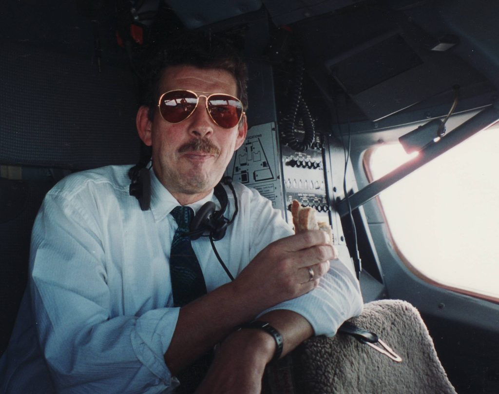 ‘Toen er weer eens een heli opsteeg voor een vlucht rond de basis om instrumenten te kalibreren, beleefde ik mijn luchtdoop. Omdat ik in mijn jeugd heel wat keren over mijn nek ben gegaan in een auto en op een boot, zat ik wel met een probleem. Want wat moest ik als dat me ook in die helikopter zou overkomen.’ Met een brede lach vervolgt Henk: ‘Ik dacht: ik neem mijn binnenhelm mee en die kots ik gewoon vol. Maar ik ging niet over mijn nek, in de lucht ben ik nog nooit over mijn nek gegaan.’