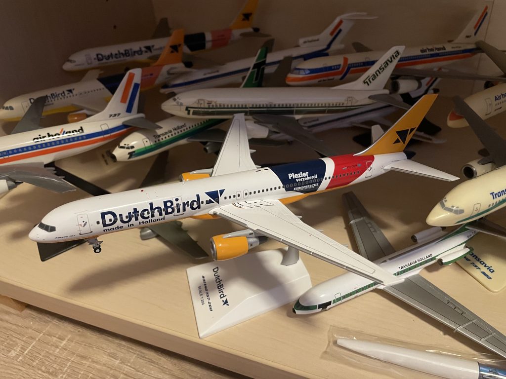 Onlangs heeft hij alle vliegtuigmodellen afgestoft, opnieuw gerangschikt en gerubriceerd. ‘Eerst vond ik alles mooi’, vertelt Simon. ‘Alles is ook mooi maar het werd hier overvol. Daarom heb ik mezelf de vraag gesteld wat echt bij mij hoort. Ik had een mooi model van een 747 van Kalitta. Maar wat had ik met Kalitta? Eigenlijk niets. Als ik dan van iemand hoor dat hij een Kalitta-fan is en op zoek is naar juist dat model, wie ben ik dan om dat te houden? Ik vind het zelf ook heel leuk als mensen met mij contacten over iets van Martinair omdat ze vinden dat dat bij mij hoort.’ Intussen is Simon actief op Marktplaats, zowel om zelf bijzondere vondsten te doen als om anderen van dienst te zijn. ‘Onlangs vroeg iemand mij naar de 737 van de Duitse tak van TUI. Dan loop ik naar de plek waar ik alles van Duitsland heb staan en zie ik in één oogopslag of ik hem eraan kan helpen. Vroeger moest ik soms echt heel lang zoeken.’