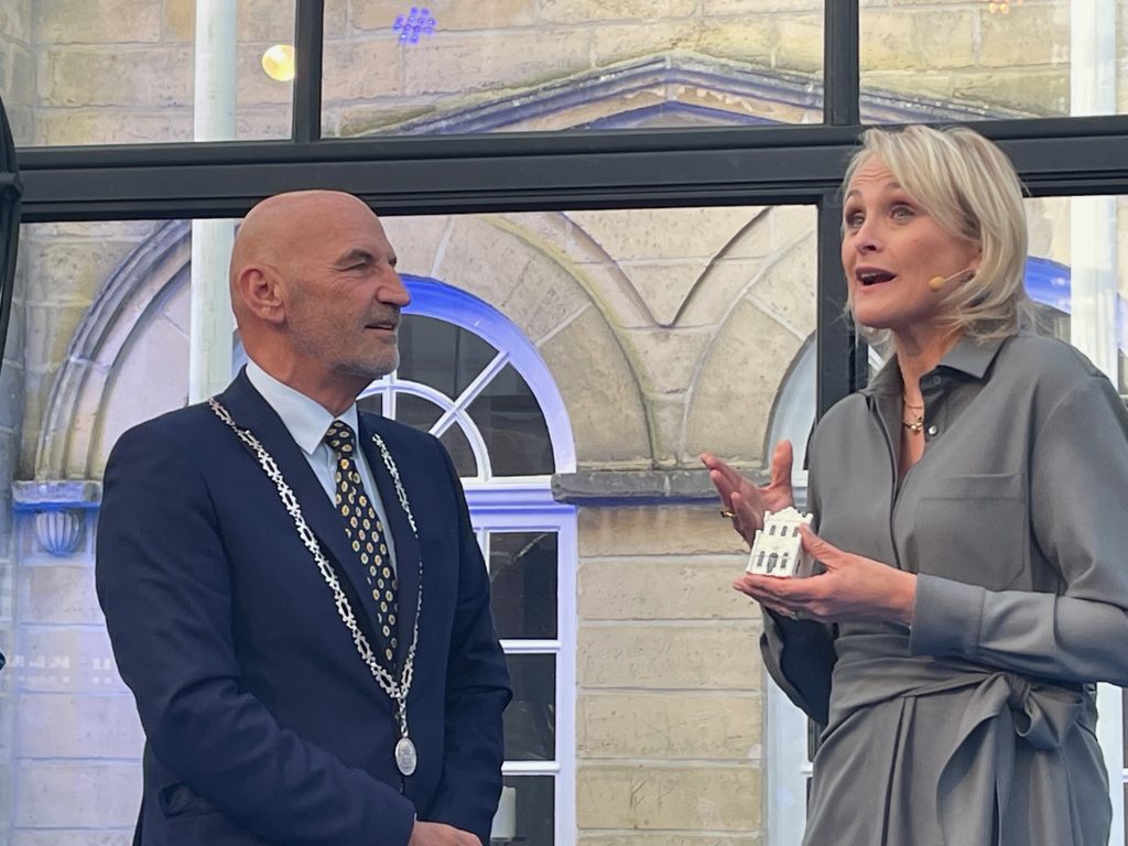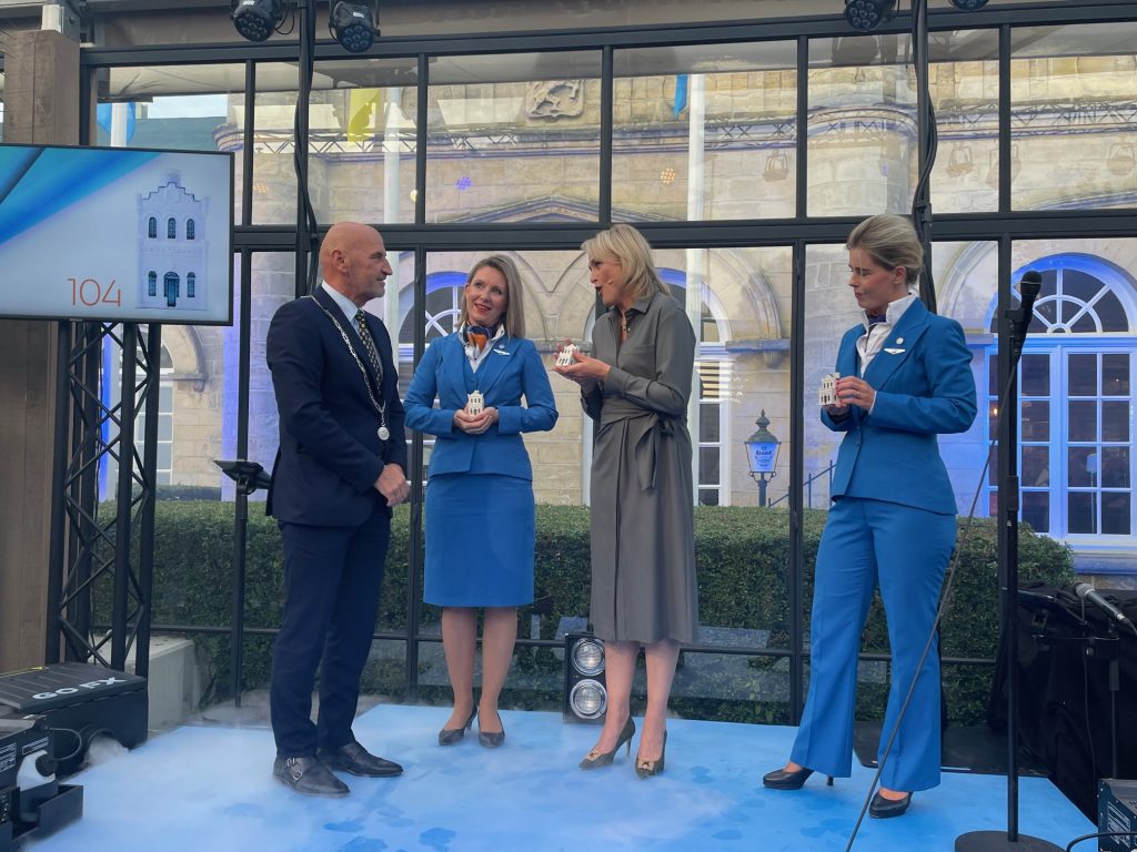 ‘Vandaag staan hier opnieuw in de schijnwerpers de luchtvaart, de spoorwegen en de gemeente’, vervolgde Prevoo. ‘Een belangrijk deel van onze economische en toeristische geschiedenis komt hier bij elkaar. Luchtvaart en spoorwegen zijn belangrijke aanjagers geweest voor toerisme wereldwijd. Reizen naar plaatsen is in bijna alle gevallen een beloning, het verruimt je blik en kennis over andere plaatsen en culturen. Je overstijgt grenzen, het draagt bij aan je welzijn en ontwikkeling. Dat zijn de waarden die we omarmen in wat en wie we zijn. En vandaag is een mooi markeerpunt van het besef van onze oude vriendschap die ik met trots zal uitdragen.’ Een tip voor een KLM’s volgende verjaardag had de burgervader ook: ‘Een ruïne in Delftsblauw.’ Maar daarmee hintte hij er vooral om nog eens terug te komen in zijn stad. Met een korte filmpresentatie werd duidelijk hoeveel moois het mergelstadje te bieden heeft.