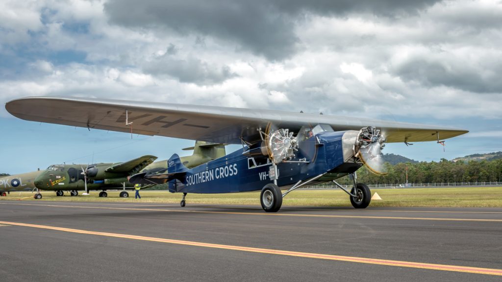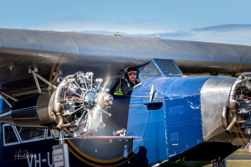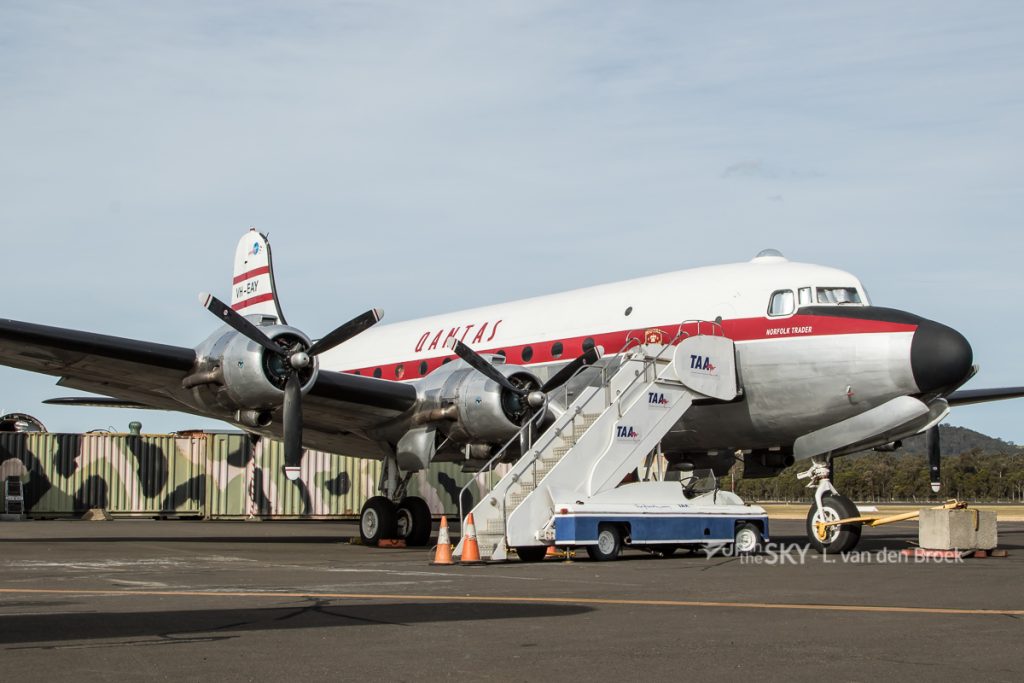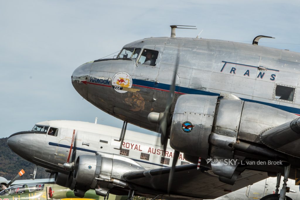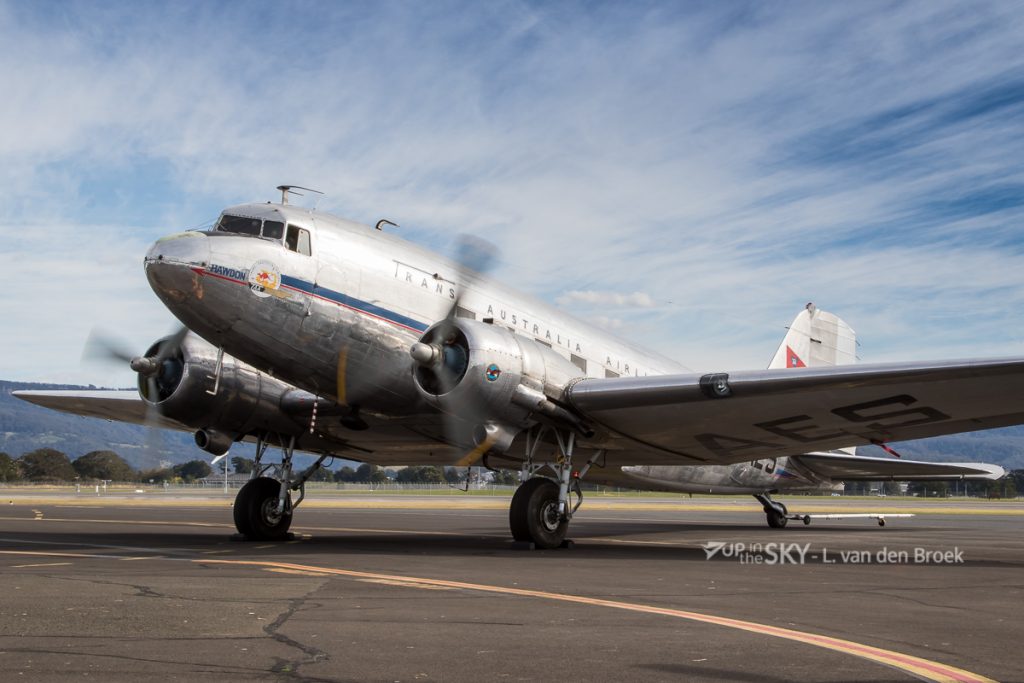 De Dakota VH-AES is gestoken in de livery van Trans Australia Airlines (TAA) uit 1946, toen dit toestel de eerste vlucht uitvoerde voor TAA van Melbourne naar Sydney. Na vele omzwervingen binnen Australië, maakt deze DC-3 sinds 2016 deel uit van de HARS-collectie. Johan Henzen: ‘De VH-AES vloog ook nog rond in Papoea Nieuw-Guinea bij Sunbird Airlines, een dochteronderneming van TAA. Ook bevond ze zich enige tijd bij de ingang van Tullamarine Airport in Melbourne op een paal voor de parkeergarage!’