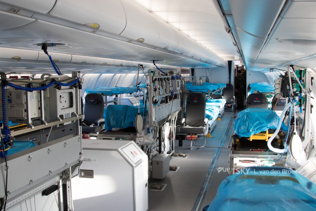 De Duitse luchtmacht zet ook A330’s in als vliegende ambulances. Er zijn echter opvallende verschillen met de Franse uitvoering. De A330MRTT T-054 is standaard uitgerust voor “aeromedical evacuation” ten behoeve van de Luftwaffe. De medische uitrusting is deels afkomstig van de Airbus A310, de voorganger van de A330 bij de Duitse luchtmacht. Een Duitse vlieger-arts vertelt: ‘Alle uitrusting moest helaas wel opnieuw gecertificeerd worden. Dit toestel kan zes intensive care-patiënten en maximaal zestien liggende patiënten vervoeren. In de achterste helft van de cabine staan nog enkele tientallen passagiersstoelen. Dit compartiment kunnen we afsluiten van het voorste deel. Het voordeel is dat patiënten of passagiers die wel kunnen lopen, niet geconfronteerd worden met hun zwaargewonde collega’s of familieleden. Tegelijkertijd is er de rust en ruimte om tot adem te komen. Je merkt vaak de ontlading aan de mensen: “We zijn eindelijk veilig”. Vaak komen ze uit een stressvolle of zelfs gevaarlijke situatie. Als ze in het vliegtuig zitten, valt er veel van ze af.’