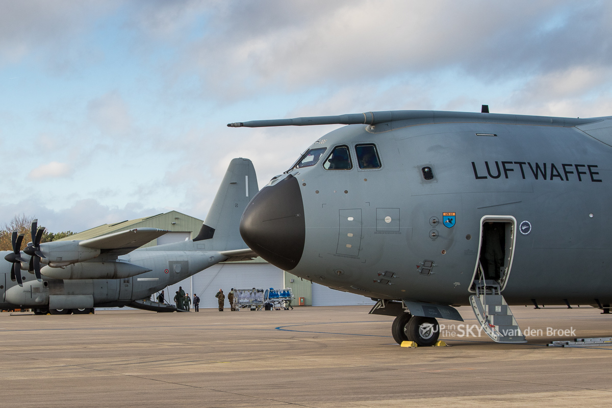 Op Eindhoven was ook een Airbus A400M Atlas aanwezig, uitgerust in een configuratie voor patiëntentransport.. Maximaal acht liggende patiënten passen in de Duitse configuratie (twee IC-patiënten, twee High Care-patiënten en vier Low Care-patiënten), met een medisch team van elf personen. De Duitse luchtmacht beschikt over units om vier A400’s uit te rusten als vliegende ambulances.