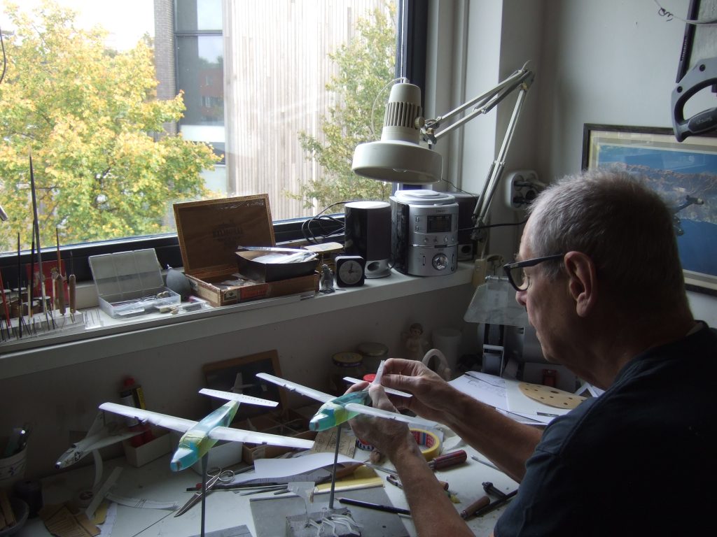 Behalve een Volvo Amazon was Bob inmiddels ook een vrouw en twee zoons rijk. ‘Bij een landelijke stichting in Noord-Holland werkte ik als provinciaal coördinator opvoedingsvoorlichting. Toen ik het daar niet meer naar mijn zin had, heb ik zonder overleg met mijn vrouw Nina, die baan opgezegd. Ik kwam nogal eens bij een modelbouwbeurs en het bleef mij niet onopgemerkt dat zelfgemaakte modellen zich onderscheiden van al wat uit de fabriek komt. Ik zag er brood in. Daarbij steunde Nina mij ruimhartig door me 5000 gulden beginkapitaal te lenen. Ik verwierp hout als materiaal omdat het steeds geplamuurd moet worden en koos voor perspex, ofwel plexiglas. Bij de Drugstore, de voorloper van het latere World of Wings, bestond er belangstelling voor diverse types vliegtuigen, waaronder de Douglas DC-2, de Uiver, en de Fokker F.XVIII, de Pelikaan. Er werd een deal gesloten dat ik die twee zou leveren voor elk 750 gulden. Toen ik ze daar in de etalage zag staan, stonden er prijzen bij van 1.500 gulden per stuk! Ik dacht: daar gaat mijn handel. Maar een dag later kreeg ik een telefoontje met een bestelling voor nog twee Uivers en nog twee Pelikanen. Toen was mijn bedrijfje een feit, liet ik me met Bel-Air Models inschrijven bij de KvK, en kon ik mijn lening snel afbetalen.”