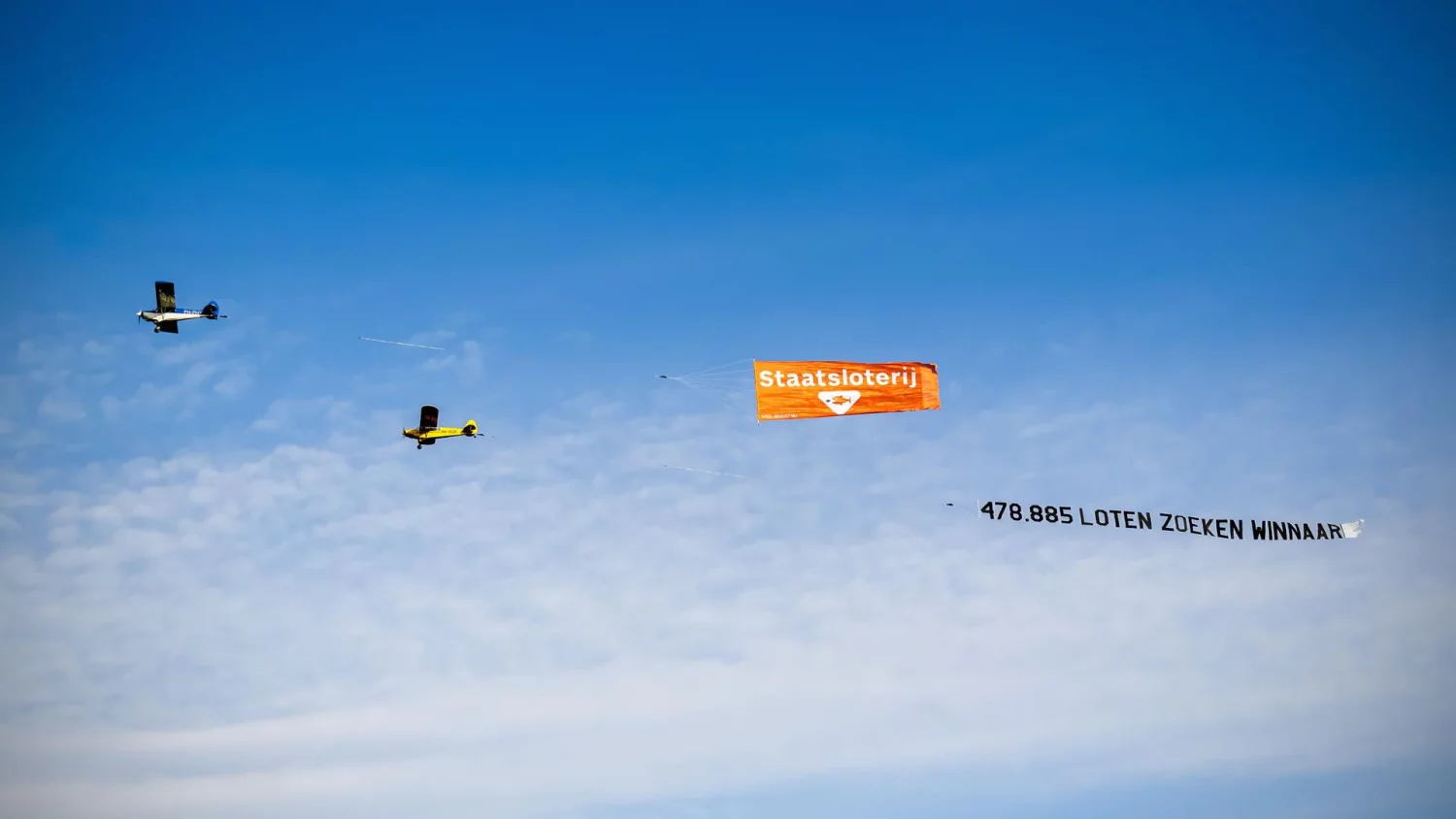 Eerder was het de bedoeling dat de campagne gisteren te zien zou zijn, maar vanwege de mist is dat een dag uitgesteld. Achter de vliegtuigjes hangt de tekst: ‘478.885 loten zoeken winnaar!’ Deze loten vertegenwoordigen een totaalbedrag van bijna 4 miljoen euro. Volgens de Staatsloterij wordt winnaars aangeraden niet te lang te wachten, aangezien prijzen uiterlijk tot 31 december 23.59 uur kunnen worden geïnd. Als winnende loten niet worden opgeëist, gaat het prijzengeld naar achttien goede doelen, NOC*NSF en de Nederlandse Staat.
