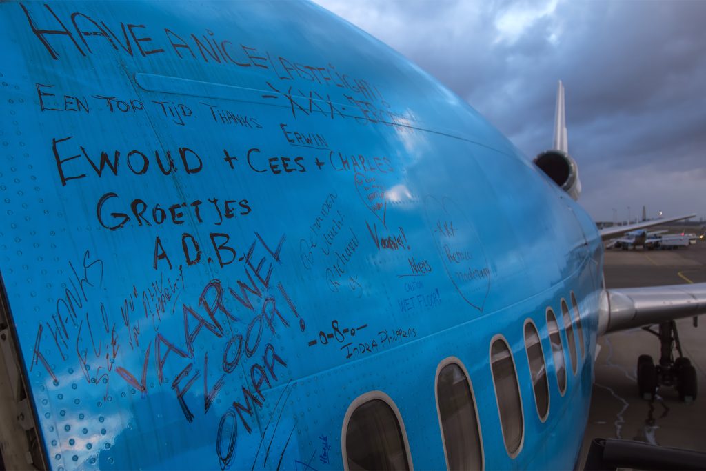 Andres was opnieuw van de partij toen de allerlaatste blauwe MD-11, de PH-KCD, haar allerlaatste start ooit maakte op Schiphol. Vanaf één van de vele gele Schipholauto’s verkeerde hij opnieuw in een VIP-positie om de machine te fotograferen. ‘Het was een emotioneel moment, het einde ook van een tijdperk. Ik heb een paar keer in de MD-11 gevlogen’, zegt Andres. ‘En dan word je verliefd op zo’n ding. Samen met de 747 is de MD-11 de meest iconische machine die KLM heeft gehad, mijn hart gaat er sneller van kloppen. Het zijn echte vliegtuigen, die maken geluid: muziek!’