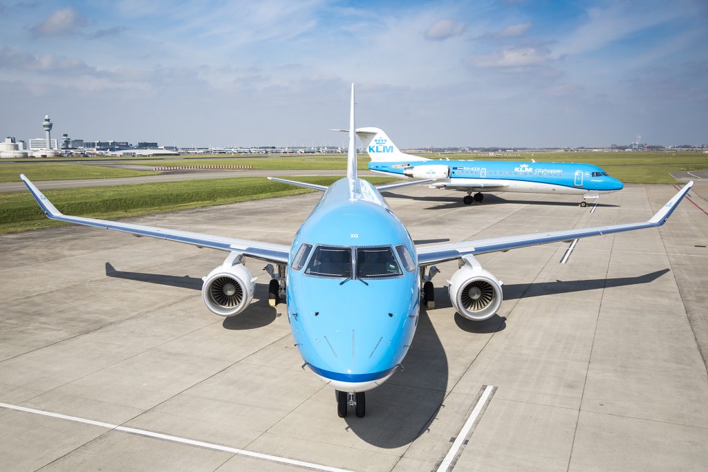 Toen de Fokker 70 uit de vloot werd genomen was Andres op uitnodiging van KLM Cityhopper opnieuw van de partij voor een fotoshoot. ‘Die dag had ik drie vliegtuigen ter beschikking: een Fokker 70, een Embraer 175 en een Embraer 190’, vertelt hij. ‘De Fokker ging eruit en de opvolgers stonden al te trappelen van ongeduld om te gaan vliegen. In eerste instantie zou geen van die vliegtuigen verplaatst kunnen worden. Best een uitdaging, want je bent toch afhankelijk van het licht. Uiteindelijk besloot de dienstdoende manager alsnog: “We gaan je helpen, je moet ze echt mooi in beeld kunnen brengen.” De kisten werden versleept, er kwam een hoogwerker bij. Dat schiep echt de gelegenheid er een leuke serie van te maken.’