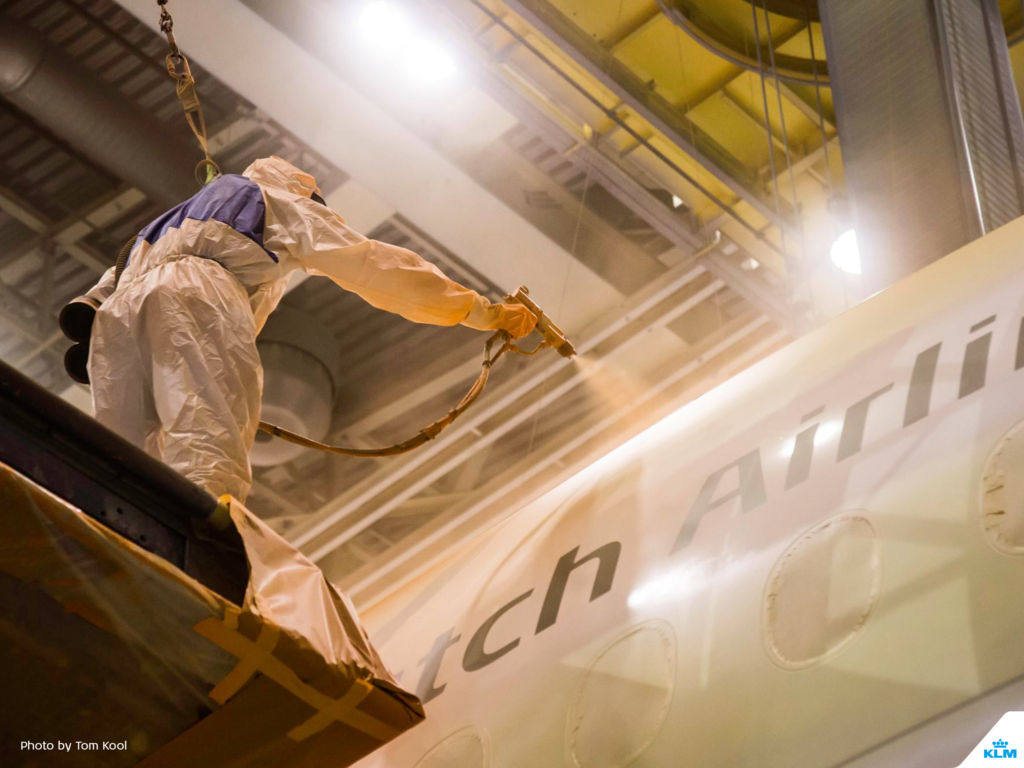 Om de lucht een beetje meer oranje te laten kleuren bespaarde KLM kosten noch moeite. Door het aanbrengen van meerdere dunnere lagen is minder verf nodig. Desondanks was er in Hangar 14, ook wel de ‘Spuitbaai’ genoemd, maar liefst 335 liter verf nodig om de neus van het vliegtuig haar kenmerkende oranje kleur te geven. In totaal zijn 35 mensen vier dagen lang druk bezig geweest met het aanbrengen van de unieke livery. Daarbij gebruikten zij tweeduizend vellen schuurpapier, duizend meter afdekplastic en honderd stofdoeken. Een indrukwekkend proces.