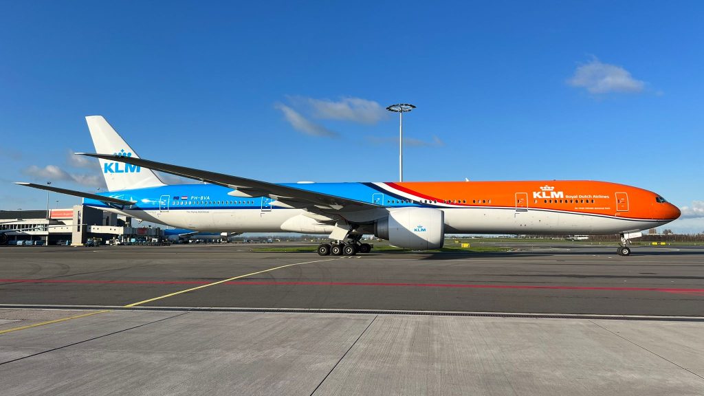 Het opmerkelijkste vliegtuig uit de KLM-vloot, de Boeing 777-300ER ‘Orange Pride’, wordt inmiddels steeds vaker gespot in haar nieuwe jasje. Tussen het oranje en het KLM-blauw is in plaats van het kleurverloop van oranje naar blauw de Nederlandse vlag verschenen.