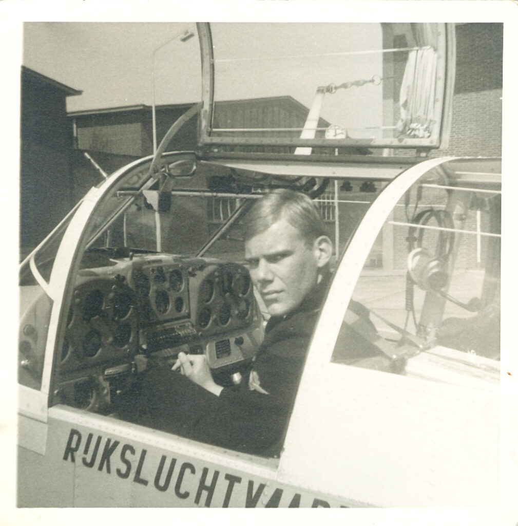 Na de verhuizing naar Eindhoven was Peter vaak te vinden in de buurt van het Beatrixkanaal op een plek waar hij de F-84F Thunderstreaks voorbijzag taxiën. Peter: ‘Behalve de boeken van Hugo Hooftman las ik de stripboeken over Buck Danny. Als ik die mannen met hun witte Buck Danny-helmen in die jagers zag zitten, wilde ik niets liever dan hun voorbeeld volgen. Mijn vader dacht er anders over. Het was niet vanzelfsprekend dat jachtvliegers op een later moment een switch konden maken naar KLM. Op Teuge en Welschap ging ik zweefvliegen. Later meldde ik me aan bij de RLS (Rijksluchtvaartschool in Eelde; red). Er waren iets meer dan tweeduizend aanmeldingen. Twintig mensen werden aangenomen waarvan ik er één was. Er werd getraind op de Saab 91D Safir. Omdat ik nog dienstplichtig was kon ik na mijn vliegopleiding niet meteen bij KLM beginnen.’