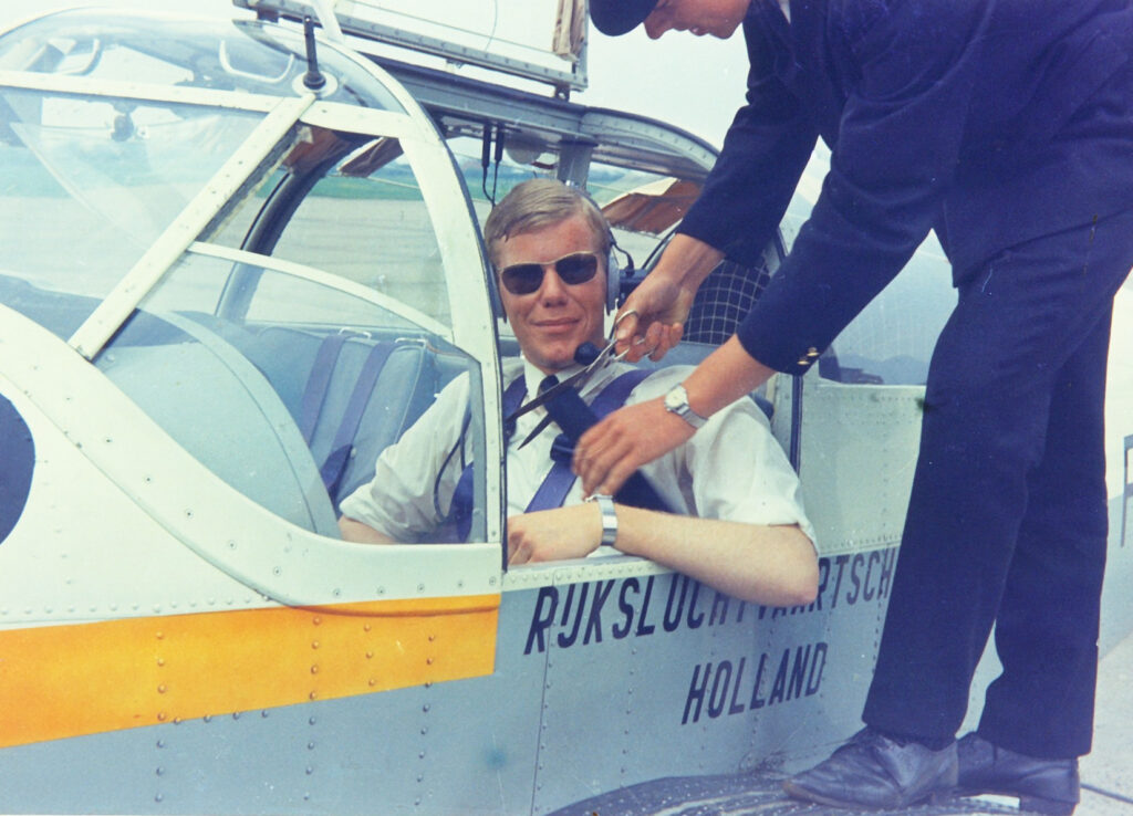 ‘Eigenlijk kwam ik best raar bij KLM binnen’, meent Peter. ‘Ik zou in september als Second Officer beginnen op de lange DC-8. Op een avond in augustus zat ik met een vriendengroepje bij de Waal waarin we af en toe een duik namen. Ineens zag ik mijn vader over de dijk rijden. Hij kwam met het bericht dat ik onmiddellijk met KLM moest bellen. Of ik de eerstvolgende maandag maar even kon beginnen. Ik bleek te zijn ingedeeld als First Officer op de DC-9, in de plaats van een luchtmachtvlieger die tijdens zijn allerlaatste vlucht was verongelukt. Eenmaal bij KLM kreeg ik een hele stapel mappen waar zijn naam op stond. “Streep die maar door”, kreeg ik als opdracht. Dat was toch even slikken.’
