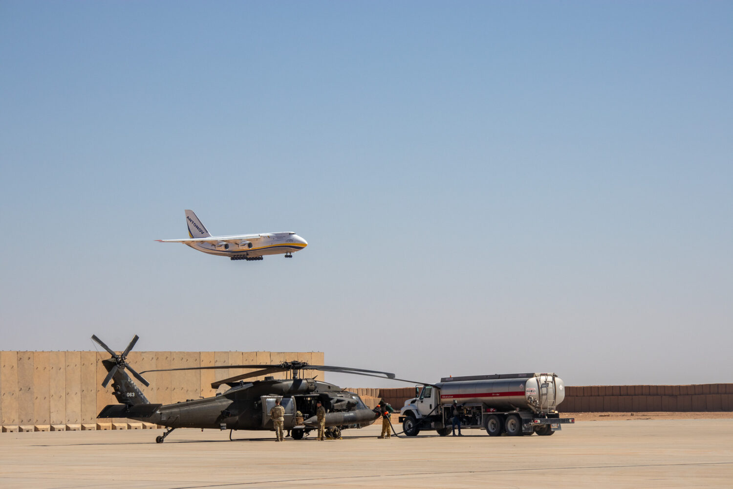 Het team van de landmacht, dat de faciliteiten opbouwt, arriveerde vorige week in Irak. Het personeel werd ingevlogen met een Antonov An-124 van Antonov Airlines. Aan boord waren ook onderdelen van twaalf meter lang, die niet in een regulier transportvliegtuig passen. Daarom werd de reus door de luchtmacht gehuurd. Zaterdag landde een tweede An-124 op vliegbasis Eindhoven, om de laatste spullen naar Irak te vervoeren.