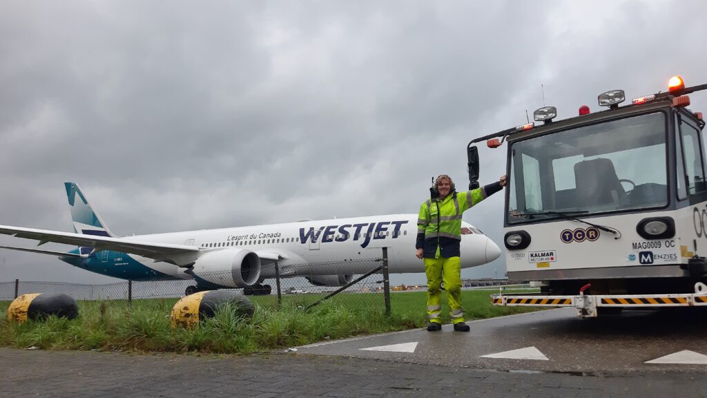 Met een brede lach vervolgt hij: ‘Inmiddels ben ik bevoegd om een pushbacktruck te besturen. Het moment waarop een captain tegen me zegt: “She’s all yours”… Gelukkiger kan je me niet krijgen. Met zo’n groot vliegtuig achter je aan rondrijden op het banennetwerk van Schiphol, dat is een enorme verantwoordelijkheid met 180 mensen aan boord en ruim twee ton brandstof in de tanks. Zodra er ook maar iets fout gaat haal je meteen het luchtvaartnieuws. Luchtvaart is zo ontzettend veilig en gereguleerd dat het al heel gauw een dingetje is als zich iets voordoet, het ligt meteen onder een vergrootglas.’ Lars glundert als hij zegt: ‘Een 757 verslepen vind ik echt helemaal niet vervelend.’ Maar het zijn vooral Boeing 737’s, Airbus A320/321’s en Embraers waarmee hij in zijn werk te maken krijgt.