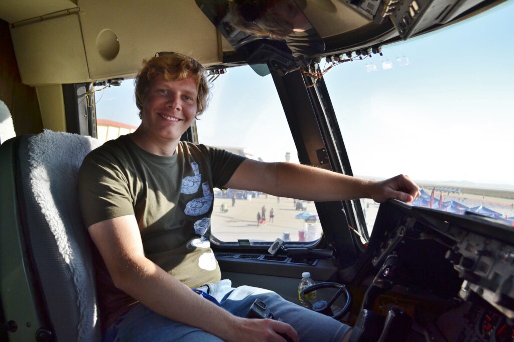 Hun derde reis naar de Verenigde Staten hield een bezoek in aan de Aerospace Valley Air Show. Lars: ‘De NASA zou ook van de partij zijn, dus grote kans de Boeing 747SP SOFIA daar was te zien. We wilden erheen. Daarvoor moesten we een portfolio aanleveren. Met onze website LAMA-Aviation, waarvan de naam niet gebaseerd is op dat spugende dier maar op de twee eerste letters van onze voornamen, was dat zo moeilijk niet. We zaten in Finland op de luchthaven van Pori te wachten op onze vlucht met een Embraer 120, toen er een mailtje binnenkwam: gefeliciteerd, twee passen voor het hele weekend. We keken elkaar aan en zeiden: nu móeten we wel gaan. Dankzij die passen konden we het terrein op voordat het general public zich aandiende. Dat bleek al vanaf vijf uur ’s ochtends te kunnen waarmee je al die aviation goodness helemaal voor jezelf had! Geweldig, de 747SP SOFIA, de laatst vliegende Lockheed L-1011 Tristar ‘Stargazer’, een KC-10 Extender, een SR-71 Blackbird, een B1-B Lancer, een NASA Gulfstream 3, een Mustang, en dat allemaal in een gouden gloed van de opkomende zon!’ De SOFIA was opengesteld, de Tristar niet. Marieke: ‘Wij tegen de man die erbij stond: “Wel jammer hè, dat ie dicht is.” Wij bekogelden hem met vragen over de systemen van die machine. “Jullie zijn toch van de pers?”, vroeg hij, wijzend naar onze fotopassen. Nee dus. “Jawel, zei hij, jullie zijn van de pers. Follow me.” Met z’n tweeën konden we via een oude galley naar boven klimmen, die L-1011 in, zo bizar.’