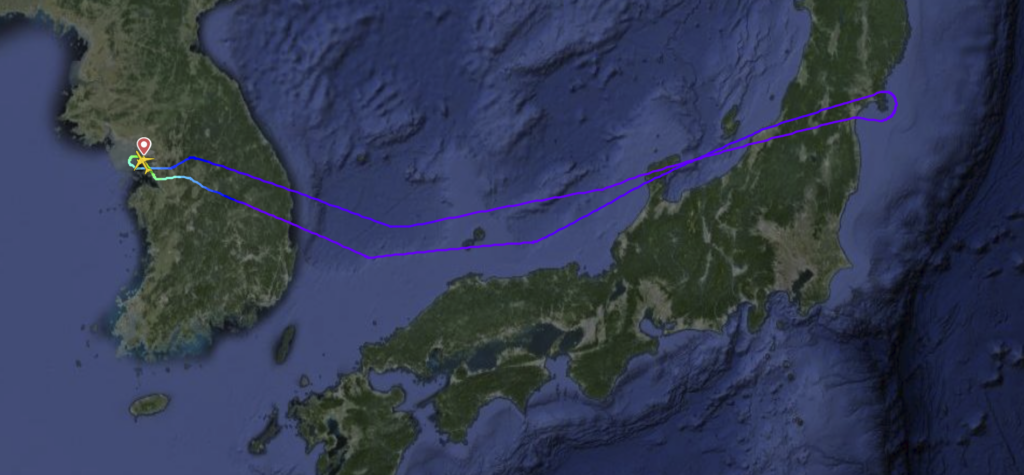 Boven het vaste land van Japan keerde de 777 om naar de luchthaven van vertrek. Op een opgenomen video kondigt een stewardess dit besluit aan waarbij duidelijk hoorbaar is dat ze moeite heeft met praten. ‘Ons vliegtuig is vandaag teruggekeerd naar Incheon. De stewardessen en piloten waren erg ziek na het eten van het voedsel, dus er zat niets anders op. Zodra het vliegtuig bij de gate arriveert, helpt het grondpersoneel de passagiers met hun reisplannen. Wij bieden nogmaals onze excuses aan’, zei ze. Uiteindelijk meldde United Airlines volgens Chosun.com dat de officiële reden van de terugkeer te wijten was aan ‘andere zaken’.