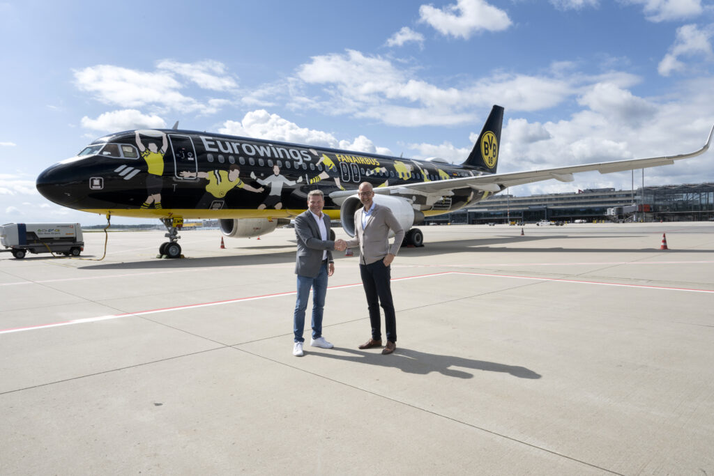 In 2022 kende Eurowings zelfs een vliegtuig volledig toe aan Borussia Dortmund, een “fan-Airbus-A320”, eveneens voorzien van een geel-zwart jasje. Dat toestel vloog de supporters naar alle sportbestemmingen in Europa. ‘BVB en Eurowings – het past gewoon. Net als Borussia heeft ook Eurowings zijn wortels in Dortmund. Wij delen de sportieve ambitie om in heel Europa tot de beste op ons vakgebied te willen behoren’, aldus Jens Bischof, CEO van Eurowings.