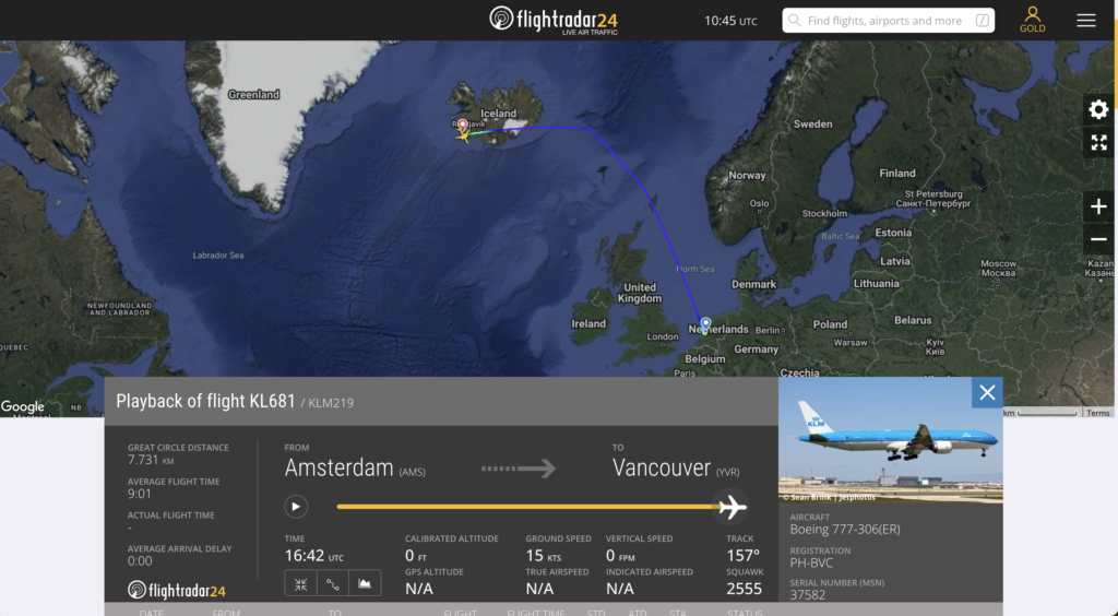 Een KLM-vlucht vanuit Amsterdam naar Vancouver maakte afgelopen zondag een ongeplande landing in Reykjavik, IJsland. Na een betrekkelijk korte tussenstop werd de reis naar Canada vervolgd.