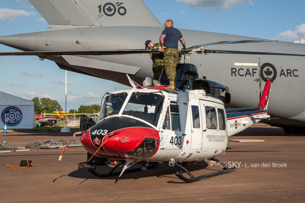 De Canadese luchtmacht was met een ruime delegatie aanwezig om het eigen 100-jarig jubileum mee te vieren. Het demoteam met de CF-188 (F/A-18) Hornet vloog voor met een fraai beschilderd toestel. Op de grond waren onder meer een CC-295 Kingfisher, een CC-177 (C-17A) Globemaster en een CC-130J Hercules te zien. De CC-295 is het nieuwe Search & Rescue patrouillevliegtuig van de Canadese luchtmacht. Aan boord van de CC-177 was een bijzondere “passagier” meegekomen: een Bell CH-146 Griffon helikopter van de Aerospace Engineering Test Establishment, het test- en onderzoeksinstituut van de Canadese luchtmacht. Op zondagavond werd deze helikopter al weer gereed gemaakt om mee terug te gaan in de C-17.