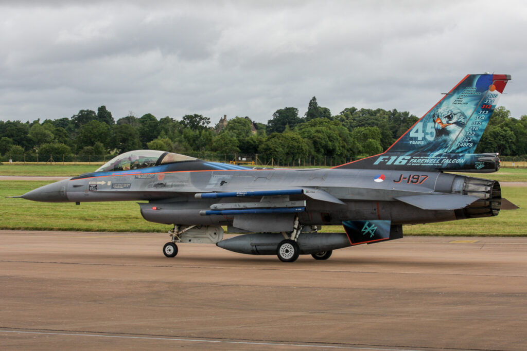 Traditiegetrouw bouwt organisatie van de Air Tattoo het programma op rond enkele thema’s. Dit jaar waren de thema’s onder meer 50 jaar F-16 en het 100-jarig jubileum van de Canadese luchtmacht. Om de 50e verjaardag van de F-16 te vieren, was een groot aantal landen uitgenodigd dat met de F-16 vliegt. Nederland spande daarbij de kroon; de Koninklijke Luchtmacht was met maar liefst vijf F-16’s aanwezig. Twee daarvan hadden een speciaal kleurenschema: de J-197 had een speciale beschildering vanwege het naderende afscheid van de F-16 en 45 jaar F-16 in Nederland. De andere F-16 (de J-616) was speciaal beschilderd vanwege 50 jaar F-16. Dit toestel is echter niet meer vliegwaardig en was eerdere deze maand over de weg naar Fairford vervoerd. De jubileumbeschildering werd vlak voor de show onthuld. Dankzij de Historische Vliegtuigen Volkel en de Bergingsdienst van de luchtmacht kreeg het vliegtuig deze kleuren en is het naar Fairford gekomen. Na de show zal de J-616 een plek krijgen als “poortwachter” op Volkel.