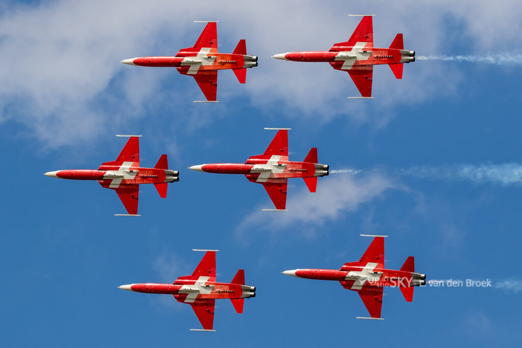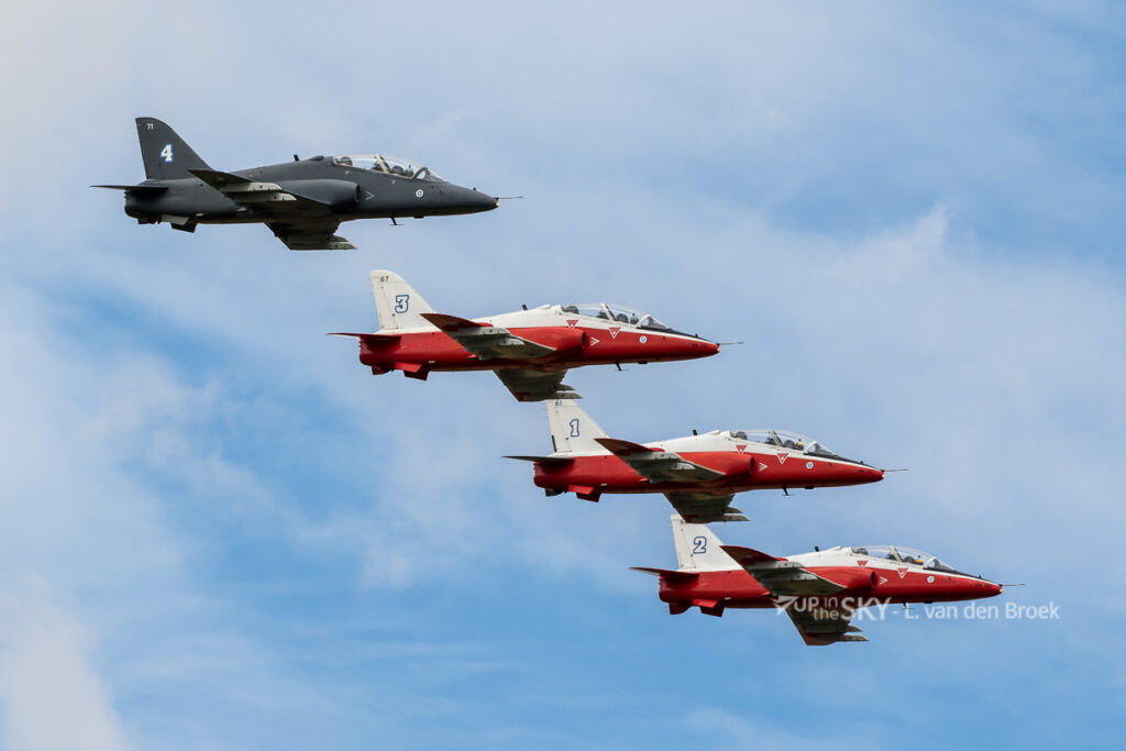 Tijdens het vliegprogramma van de Air Tattoo zijn altijd meerdere demoteams te zien. Naast de Britse Red Arrows waren dat dit jaar vooral minder bekende teams. Zo was er bijvoorbeeld het team “Yellow Sparrows”, met zes gele Saab MFI-17’s van de Noorse luchtmacht. De lestoestellen staan gebaseerd op de vliegbasis Bardufoss in het noorden van Noorwegen. Het team deed er maar liefst drie dragen over om van Bardufoss naar Fairford te vliegen. Andere teams waren de Saudi Hawks (van de Saoedische luchtmacht), de Midnight Hawks (met vier Hawk straaltrainers van de Finse luchtmacht) en de Patrouille Suisse. Dat Zwitserse team was mogelijk voor het laatst te zien op de Air Tattoo: in 2025 gaat de F-5 uit dienst bij de Zwitserse luchtmacht. Wat dit precies betekent voor het voortbestaan van het team is nog onbekend. Vooruitlopend op het mogelijke afscheid, vlogen de Red Arrows en Patrouillse Suisse op zondag in een gezamenlijke formatie langs het publiek.