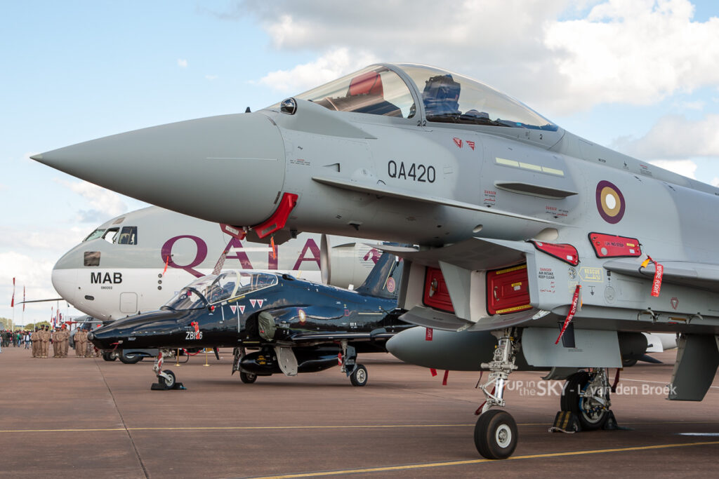 Een ander land met historische banden met het Verenigd Koninkrijk is Qatar. Het emiraat was tot 1971 een Brits protectoraat en heeft goede relaties met de Verenigde Staten en het VK. Sinds een paar jaar zijn er zelfs twee gezamenlijke luchtmachtsquadrons op Brits grondgebied, waarbij personeel van de Britse Royal Air Force en Qatar Emiri Air Force intensief samenwerken. Eén Qatarees-Brits squadron met de Eurofighter Typhoon is gebaseerd op RAF Coningsby, het andere (een opleidingssquadron met de BAE Hawk Mk.167) heeft als thuisbasis RAF Leeming. Met deze samenwerking is het dus niet zo vreemd dat de Qatarese luchtmacht haar 50-jarig jubileum vierde met een ruime deelname aan de RIAT – al was dit jubileum geen officieel RIAT-thema.